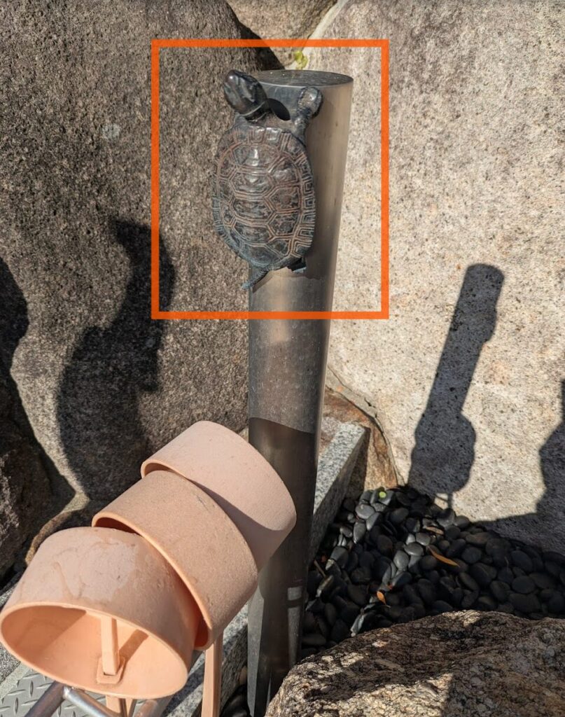 - ご本尊が「亀」に乗っている? 昔、山蔭(やまかげ)という貴族が、漁師に捕まっていた亀を助けて逃がしてあげました。その後、山蔭が川に落ちてしまったとき、なんとその亀が現れて彼を背中に乗せて救ってくれたのです。その恩から、このお寺のご本尊(観音様)は亀の背中に乗った非常に珍しい姿をしています。